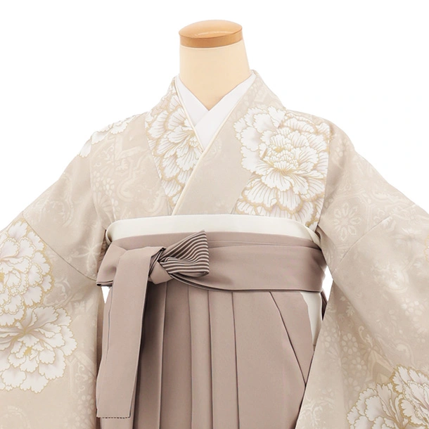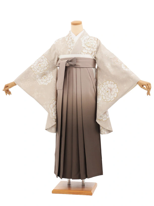 先生,教員向け袴レンタルT265ベージュ花×モカベージュぼかし