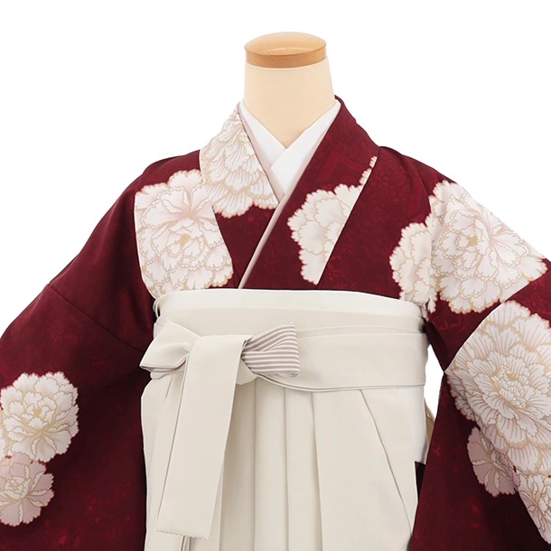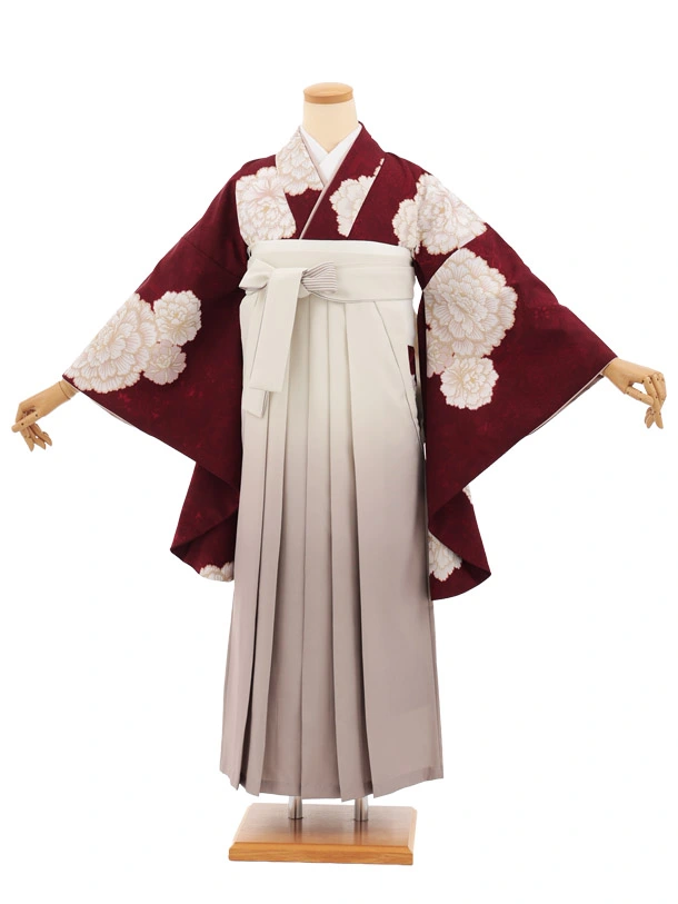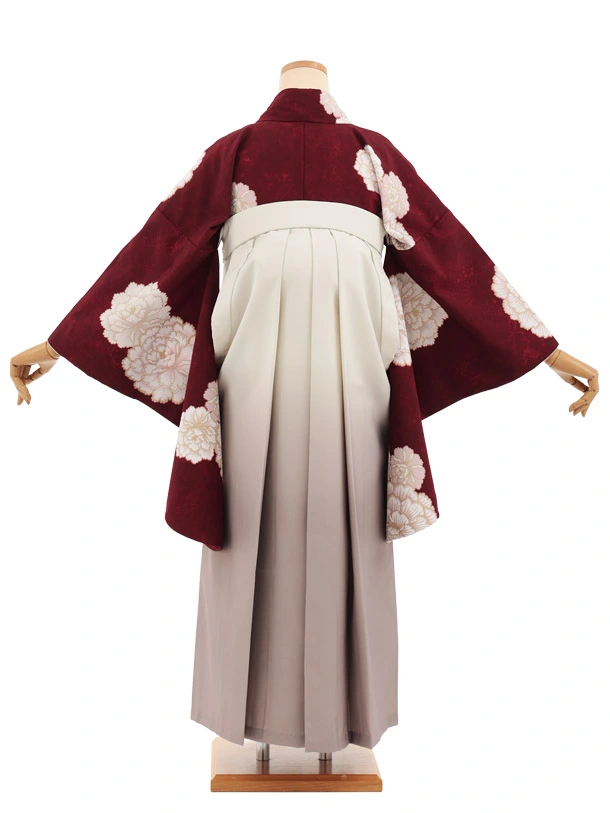 先生,教員向け袴レンタルT268ボルドー花×クリームぼかし