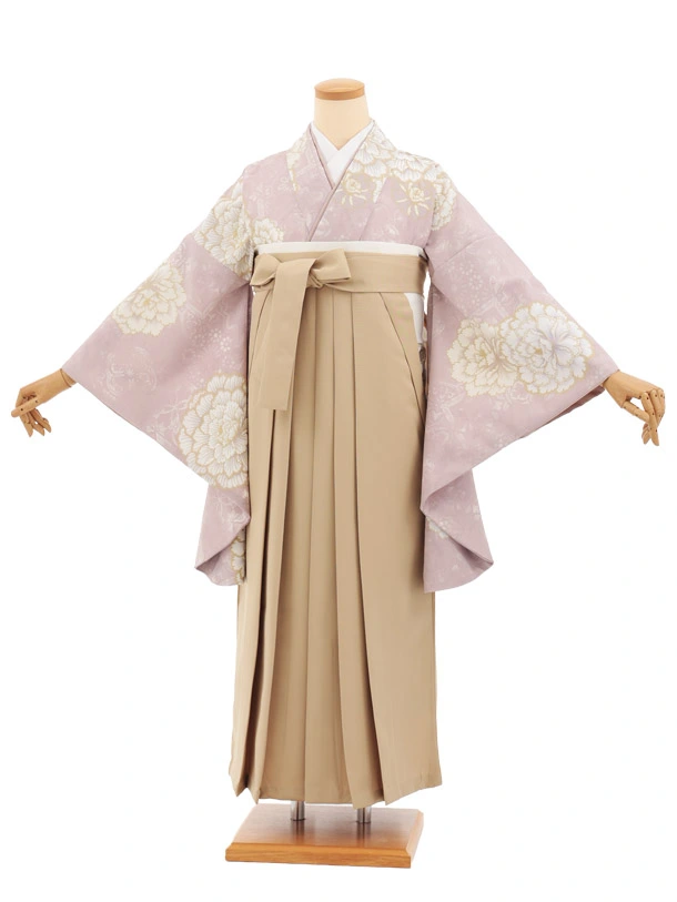 先生,教員向け袴レンタルT269ピンクパープル花×モカベージュ