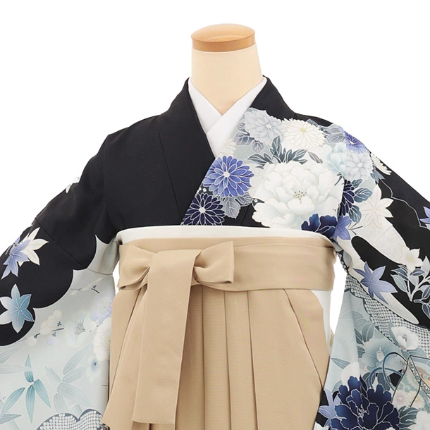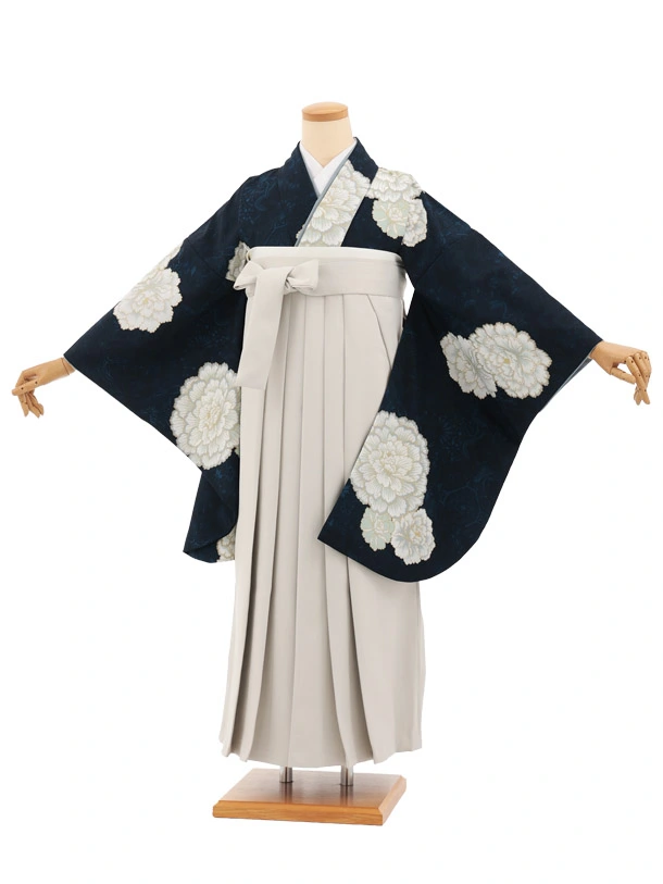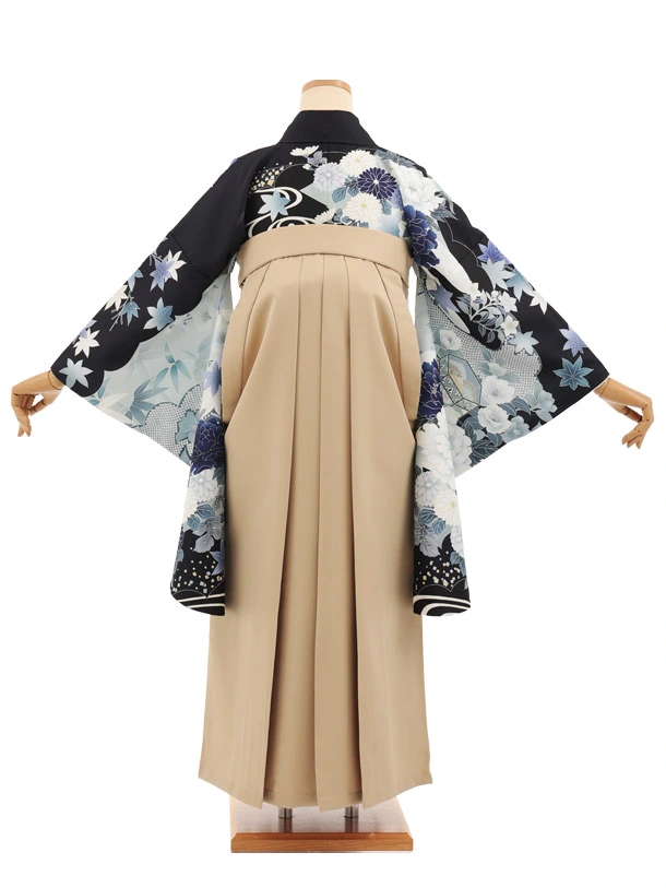 先生,教員向け袴レンタルT270紺地古典花×モカベージュ