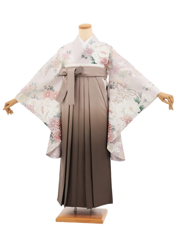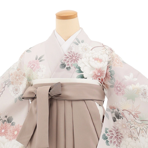 卒業袴T273ピンクベージュまりに花×モカブラウン
