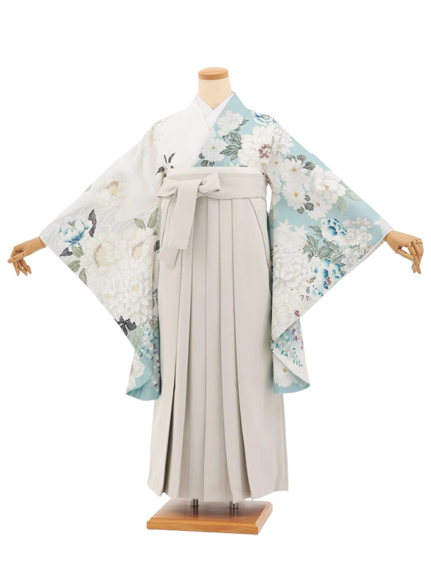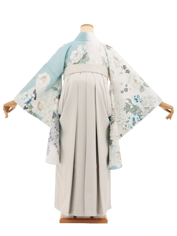 卒業袴T284ペールミント染め分け花×ベージュレザー調