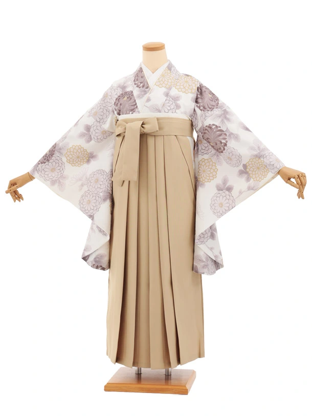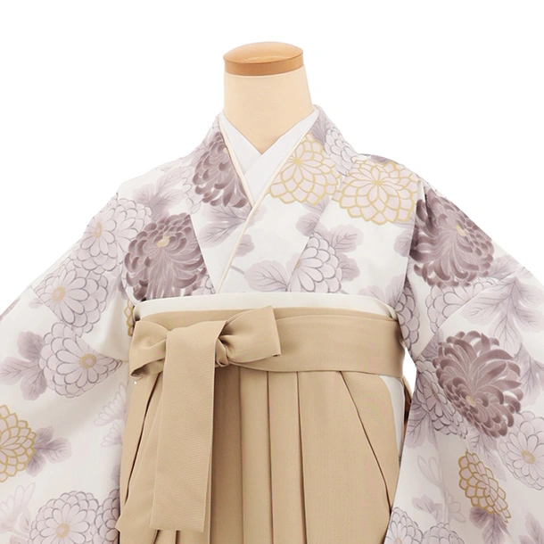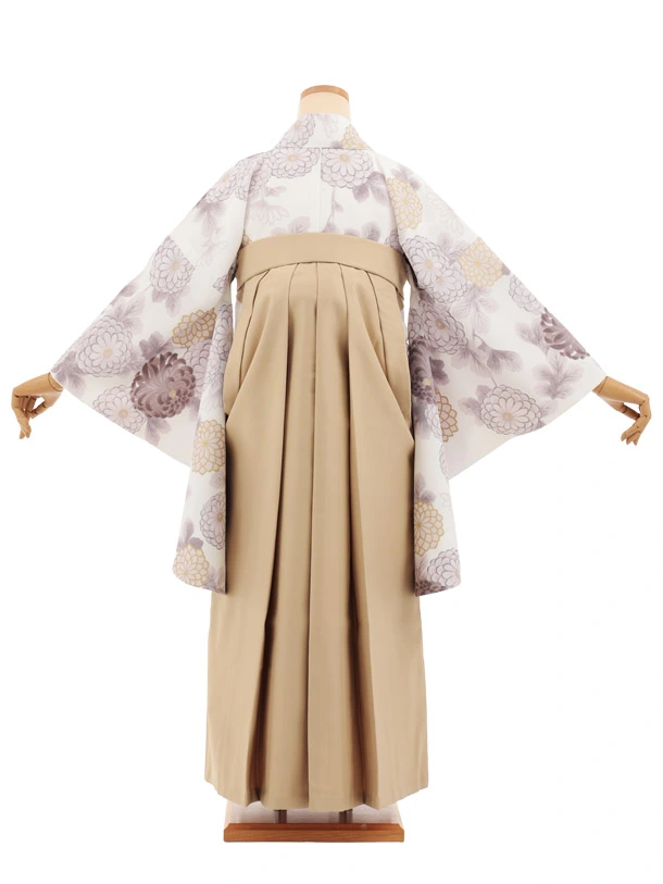 先生,教員向け袴レンタルT293白地菊×モカベージュ