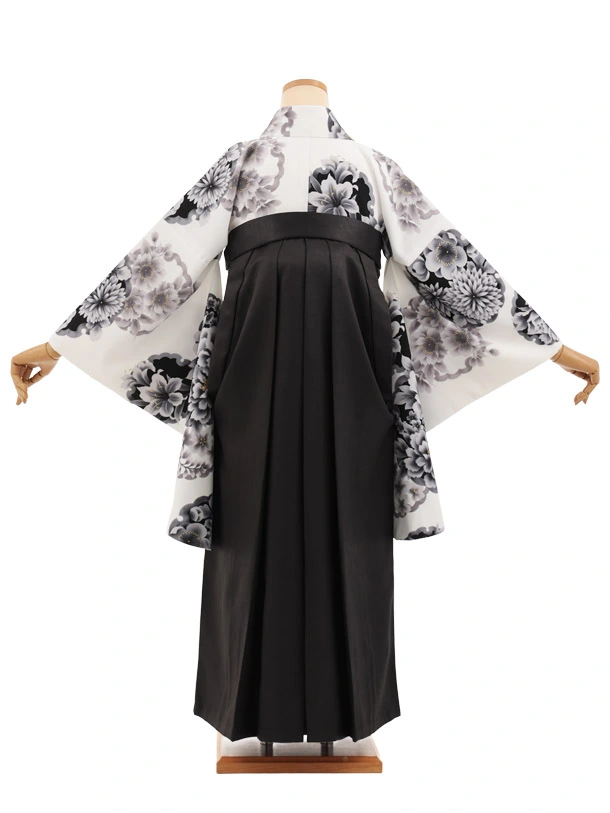 卒業袴T295白地雪輪花×黒レザー調