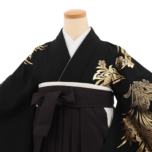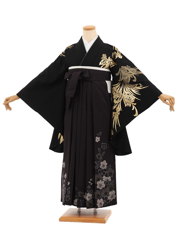 卒業袴T297黒地金彩ぼたん×黒花