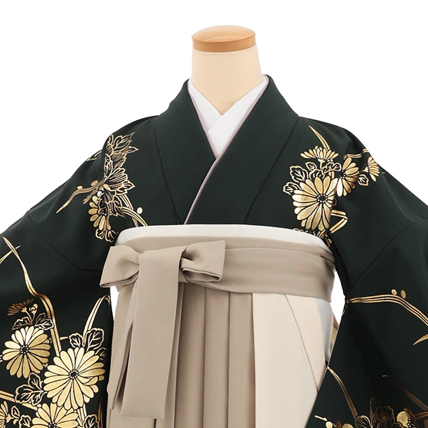卒業袴T299深緑金彩ぼたん×クリームグリーンセパレート