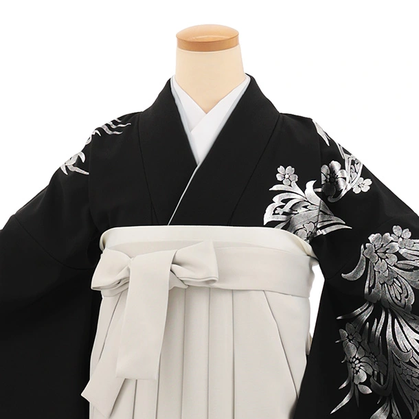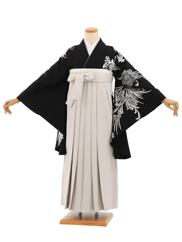 卒業袴T300黒地銀彩花×ベージュレザー調