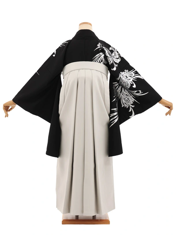 卒業袴T301黒地銀彩花×ベージュレザー調
