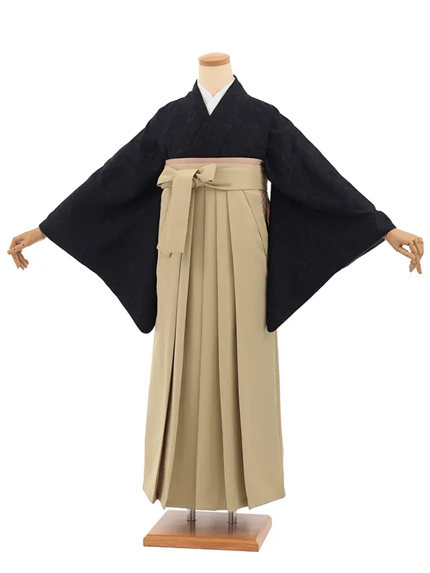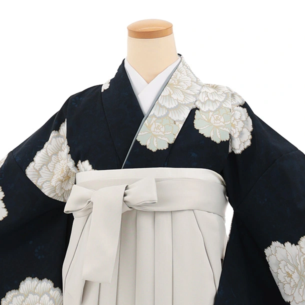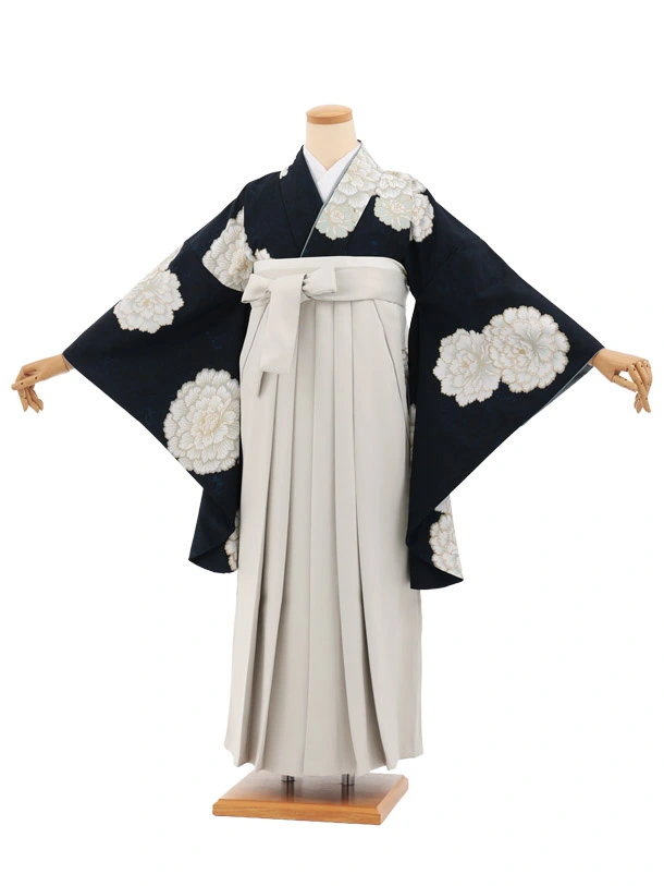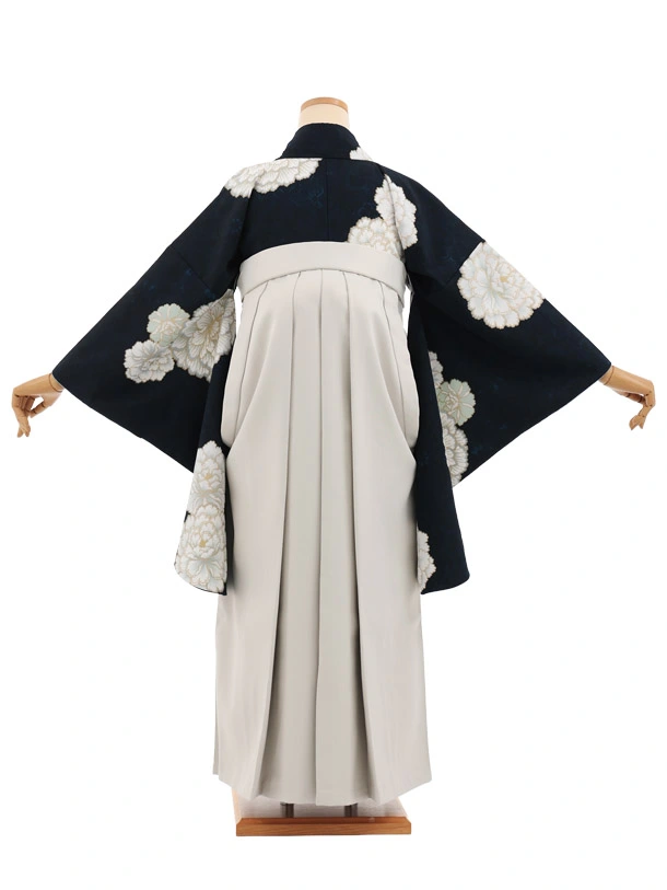 先生,教員向け袴レンタルT303ネイビー花×ベージュレザー調