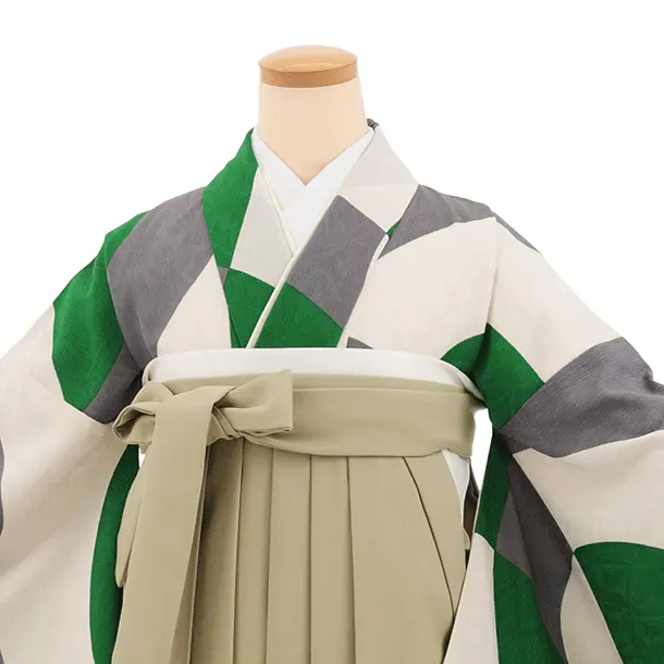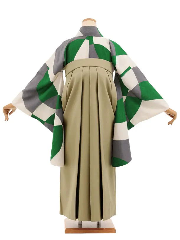 卒業袴T304クリームグレー幾何学×カーキベージュ