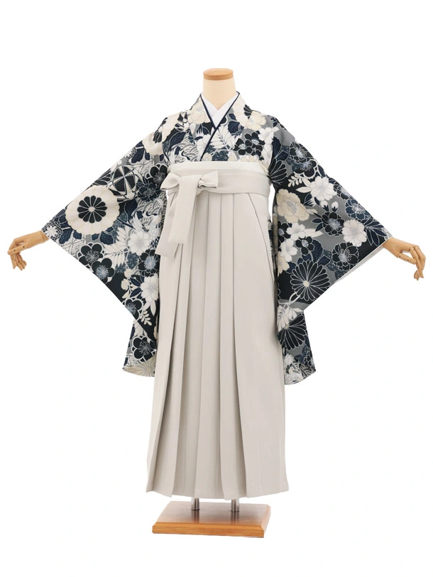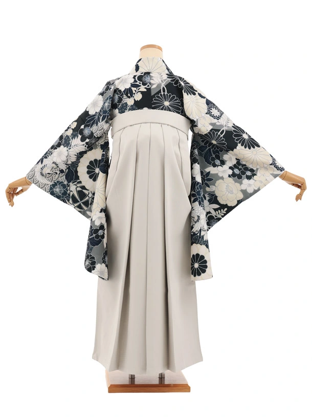 卒業袴T307紺地花づくし×ベージュレザー調