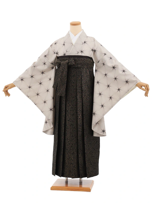 卒業袴T316ベージュ変わり麻の葉×黒金