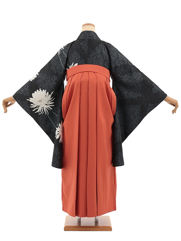 卒業袴T324黒グレーダマスク柄に花×オレンジ
