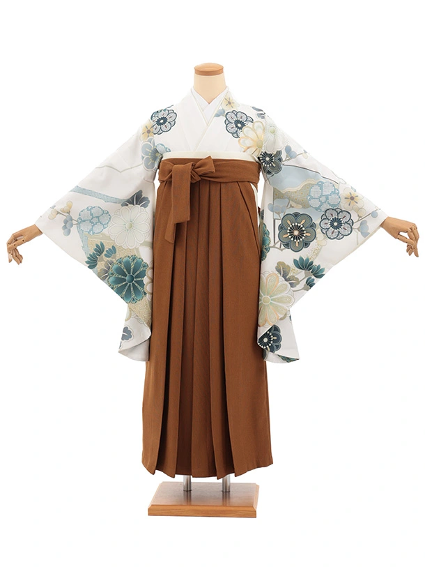 卒業袴T336白地菊梅×キャラメルブラウンコーデュロイ