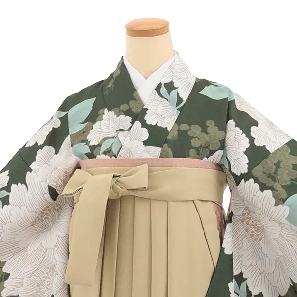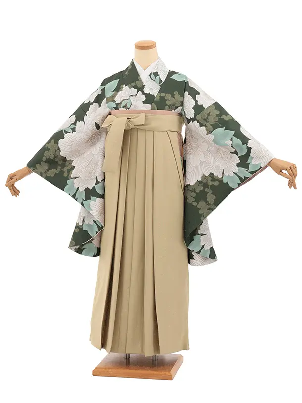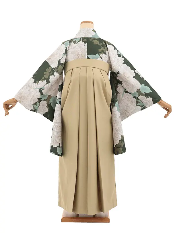 先生,教員向け袴レンタルT339グリーン地ぼたん×モカベージュ
