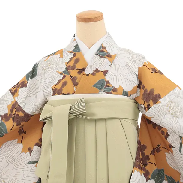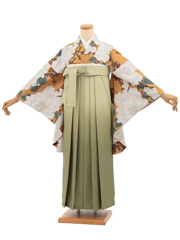 先生,教員向け袴レンタルT340からし色ぼたん×グリーンぼかし