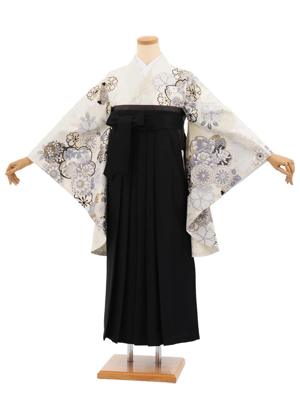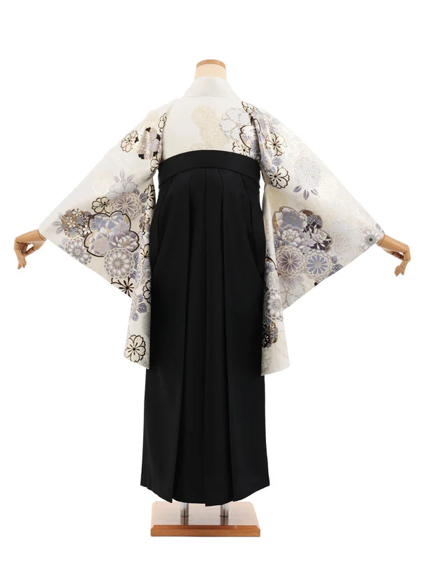 卒業袴T358 白 金彩花×黒