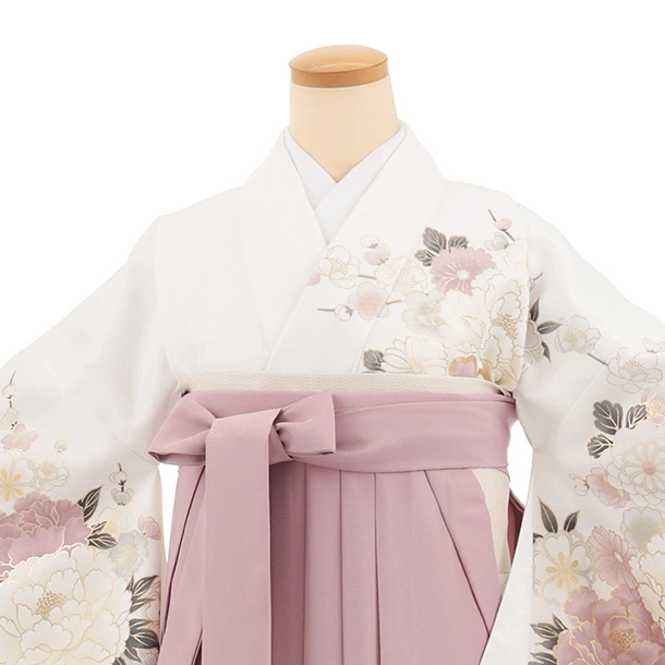 卒業袴T364 白地 ボタン花×ペールパープル