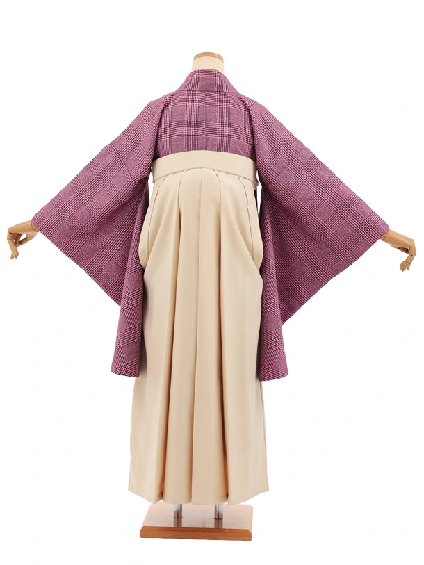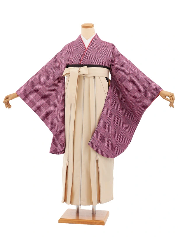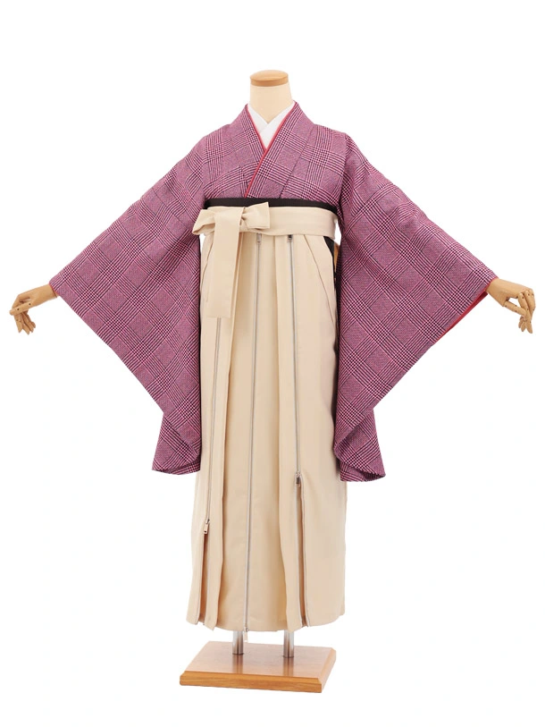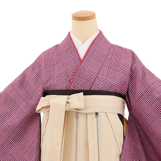 卒業袴T365 ピンクツィードグレンチェック×ベージュかざりファスナー付き