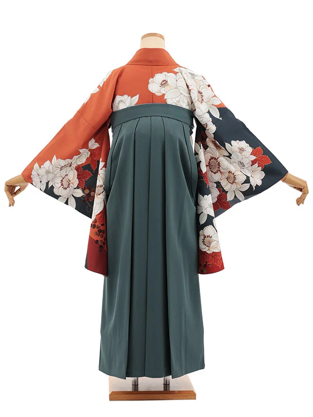 卒業袴T394 テラコッタ花×ペールブルー