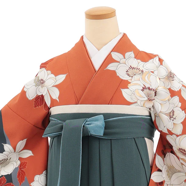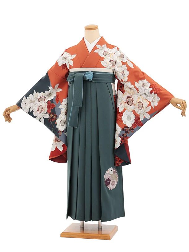 卒業袴T395 テラコッタ花×ペールブルー