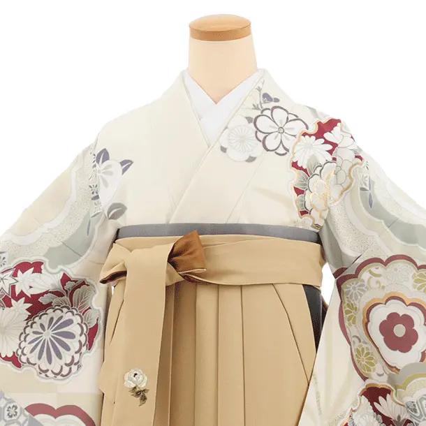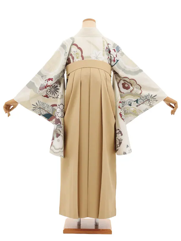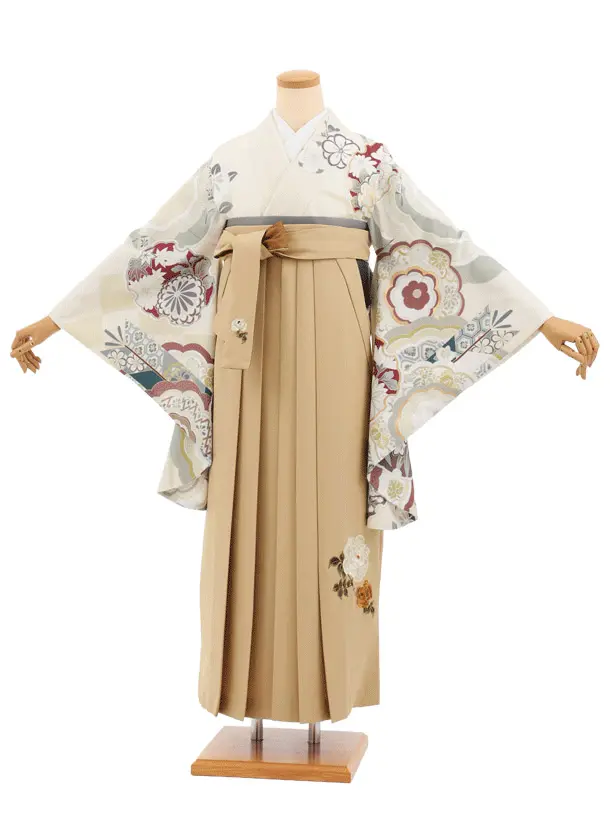 卒業式袴レンタルT412 クリーム古典雪輪×モカベージュ