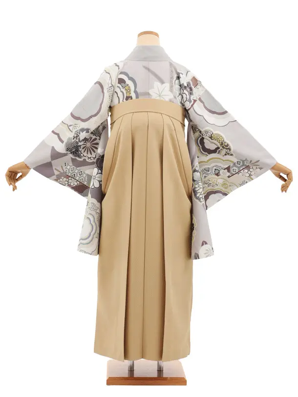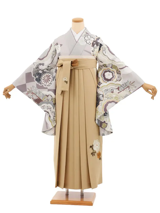 卒業式袴レンタルT413 グレイッシュパープル古典雪輪×モカベージュ