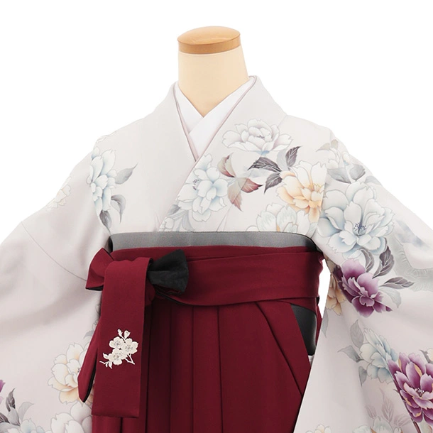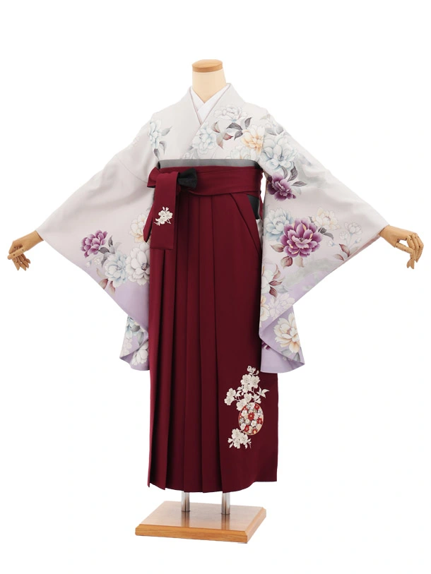 卒業式袴レンタルT417 ペールパープルぼかし花×ボルドー