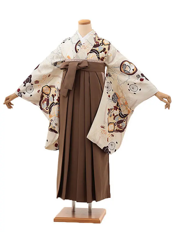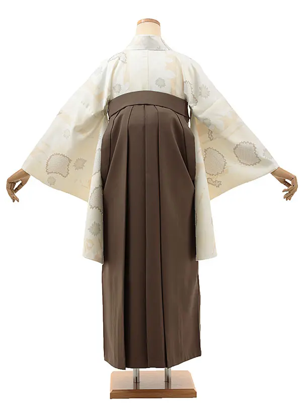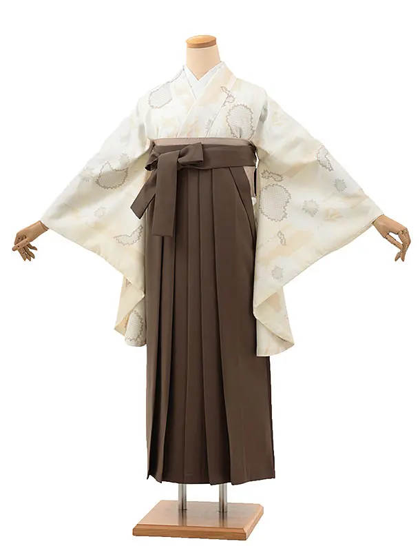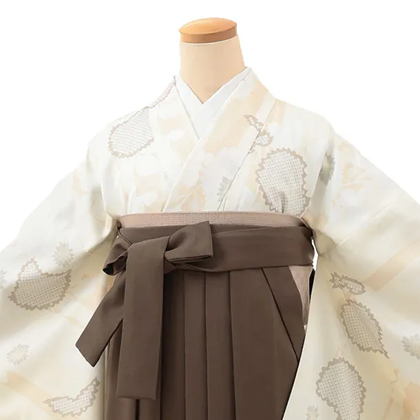 卒業式袴レンタルV002 クリーム地白花×ブラウン