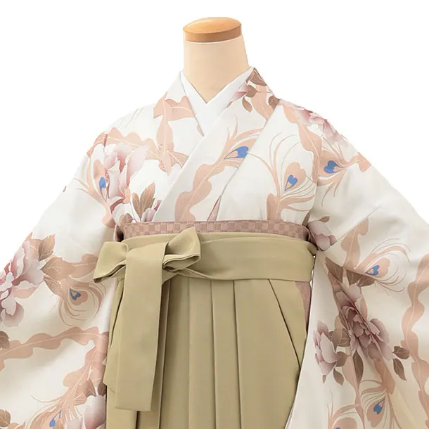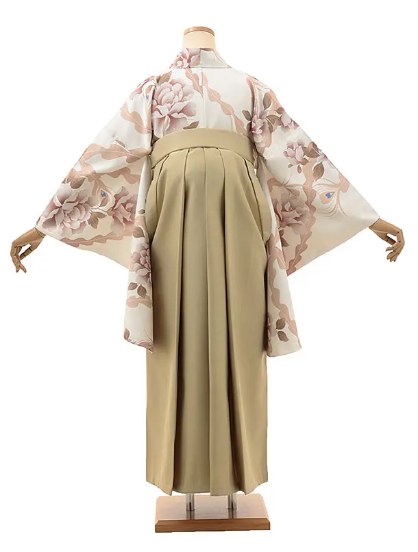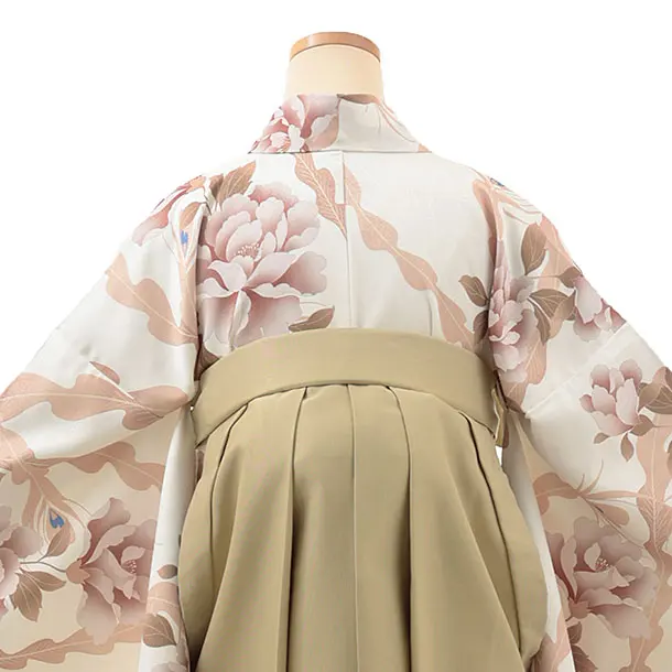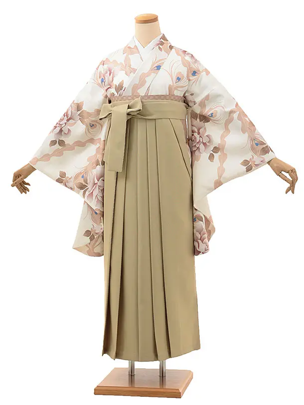 卒業式袴レンタルV003 オフホワイト花羽根×ライトベージュ