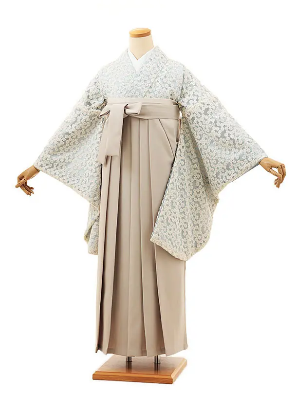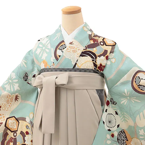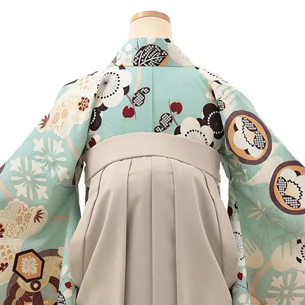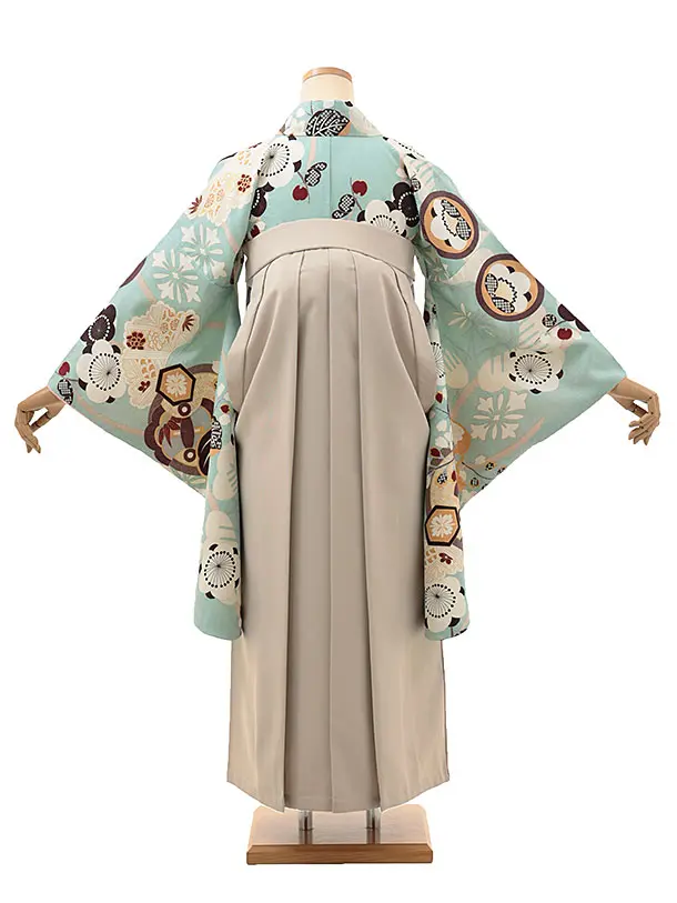 卒業式袴レンタルV039 水色 梅 橘×ベージュ