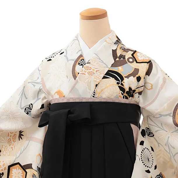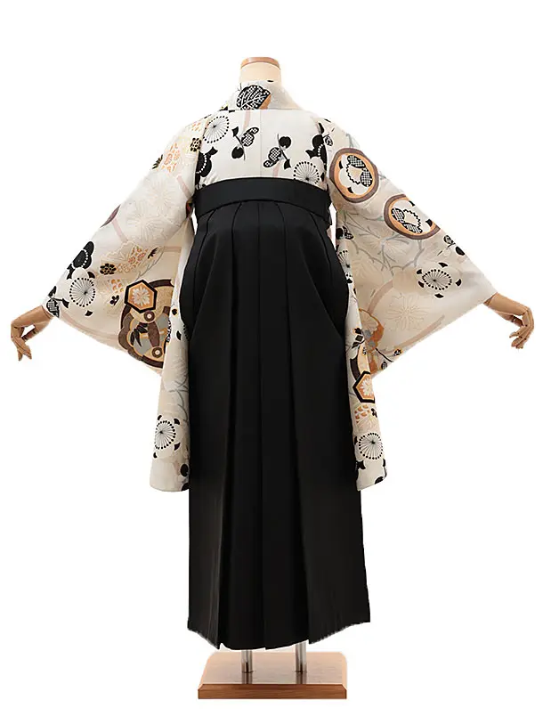 卒業式袴レンタルV041 白地 梅 橘×黒