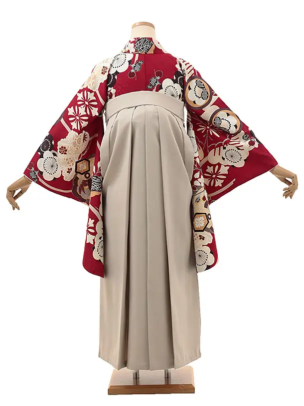 卒業式袴レンタルV043 赤地 梅 橘×ベージュ