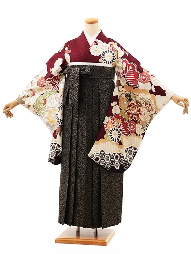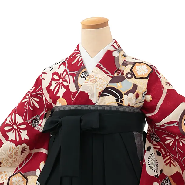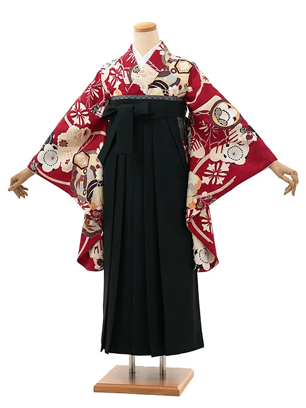 卒業式袴レンタルV045 赤地 梅 橘×黒