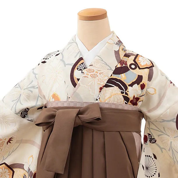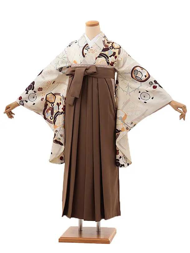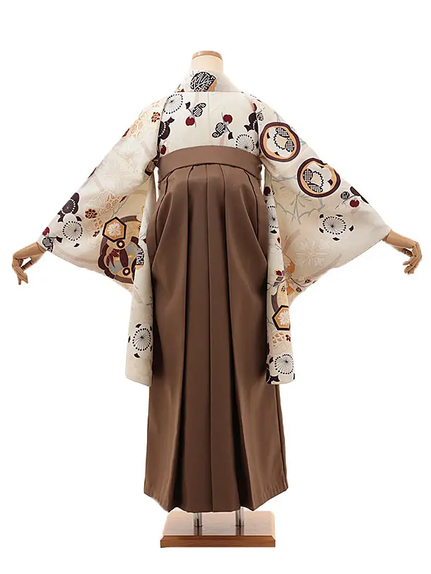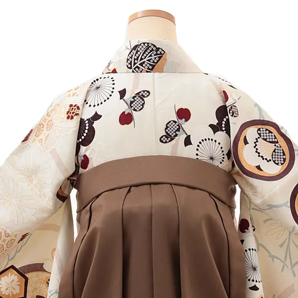卒業式袴レンタルV046 アイボリー 梅 橘×ブラウン