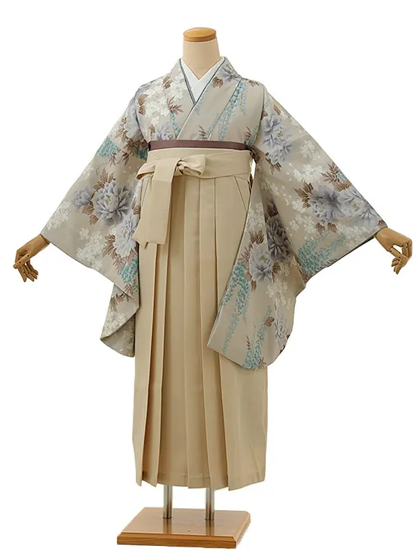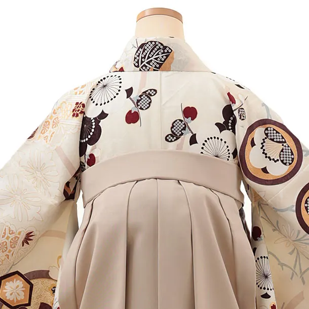卒業式袴レンタルV048 アイボリー 梅 橘×ベージュ