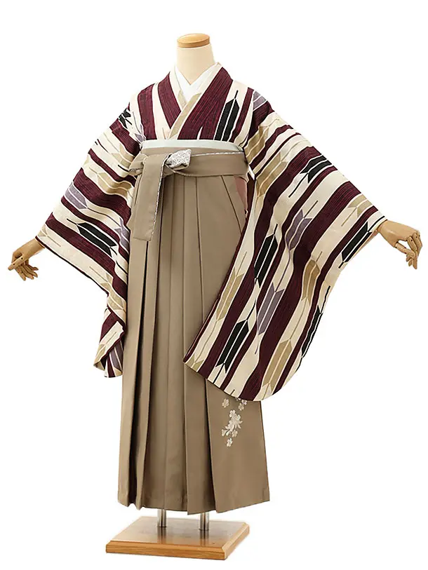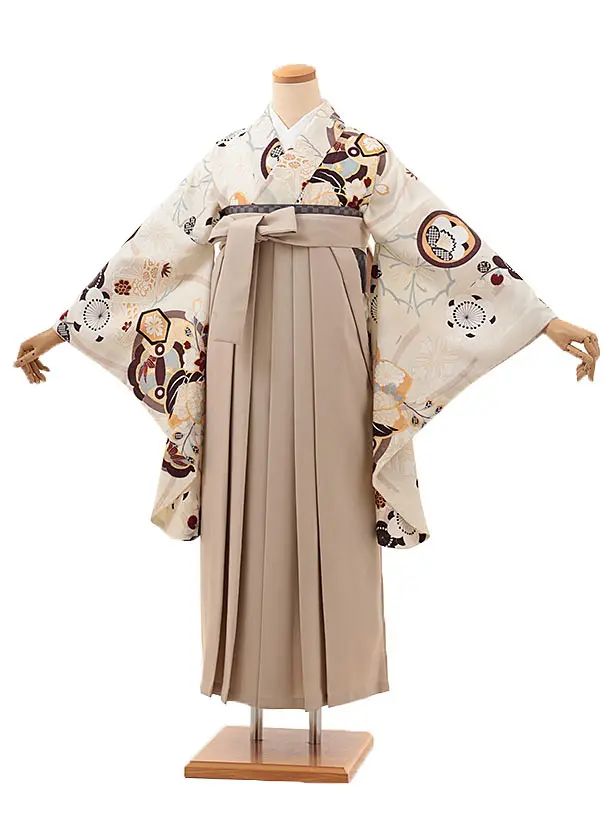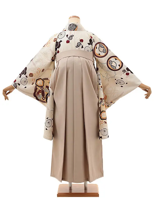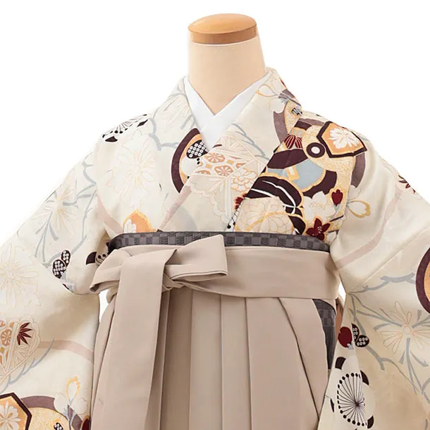 卒業式袴レンタルV049 アイボリー 梅 橘×ベージュ