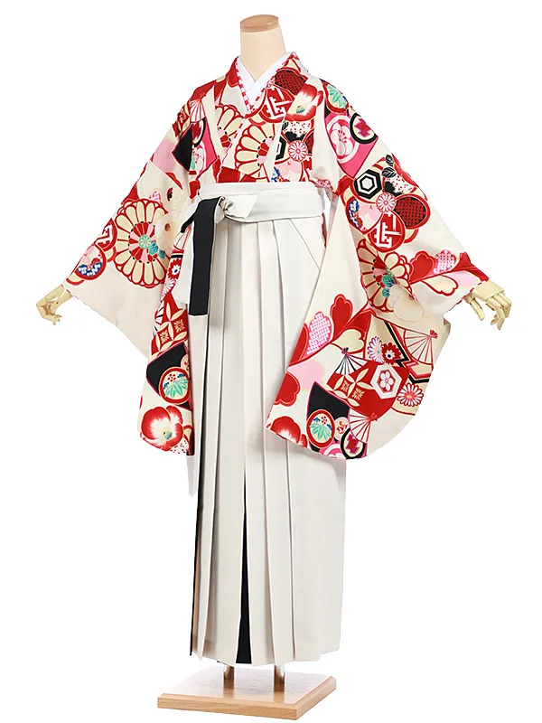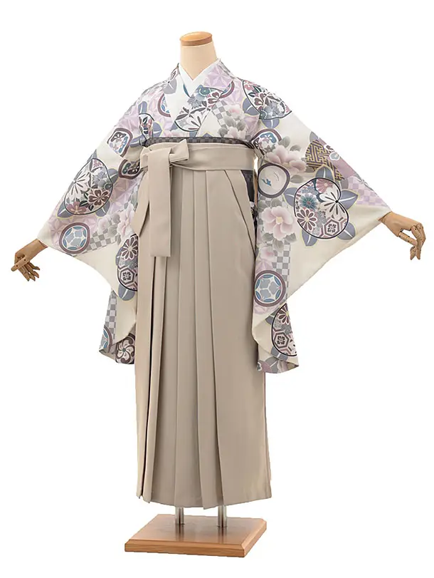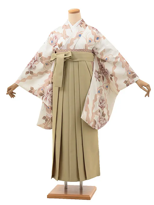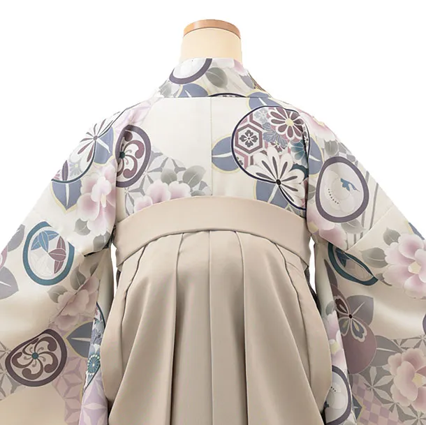 卒業式袴レンタルV065 オフホワイト 椿に橘×ベージュ