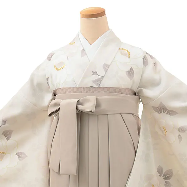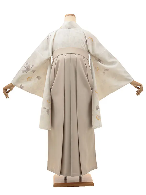 卒業式袴レンタルV066 オフホワイト 花×ベージュ