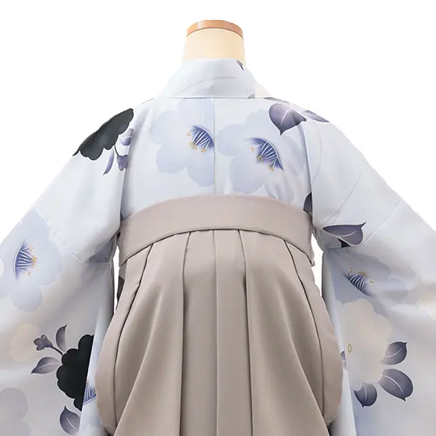 卒業式袴レンタルV073 ペールブルー 椿×グレージュ