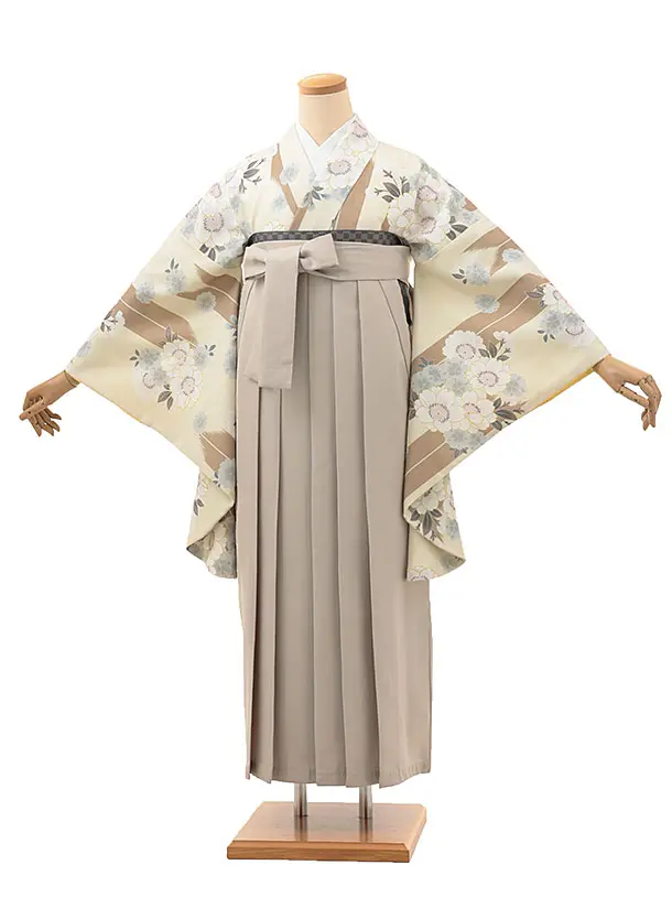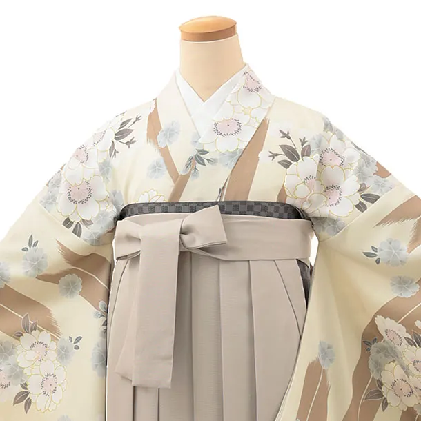 卒業式袴レンタルV078 クリーム矢柄 桜×ベージュ