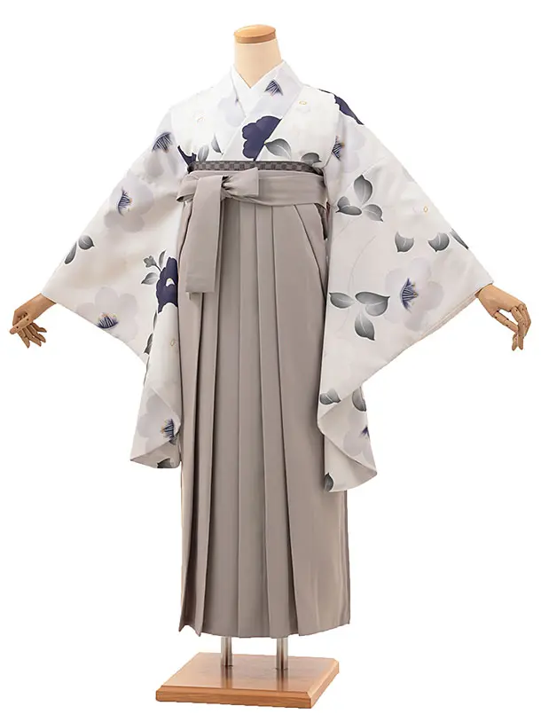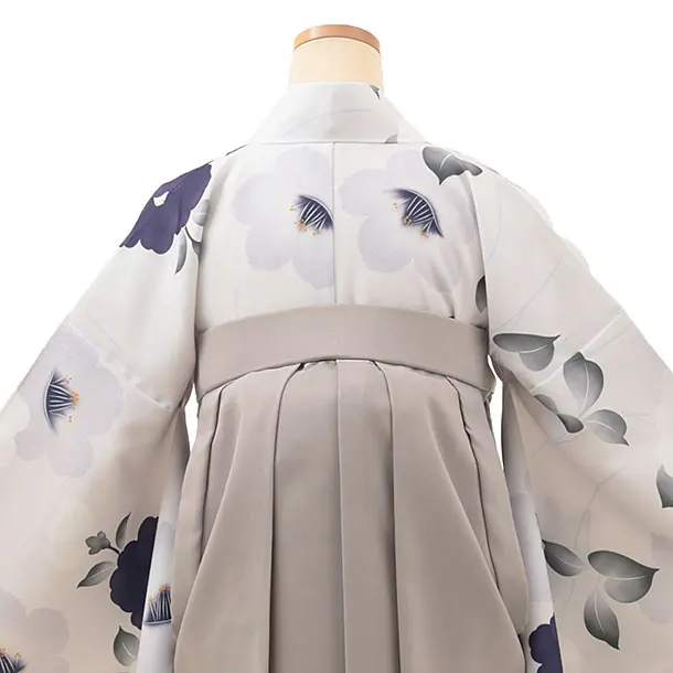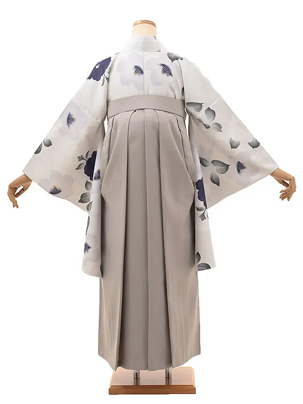 卒業式袴レンタルV084 薄パープルグレー 椿×グレージュ