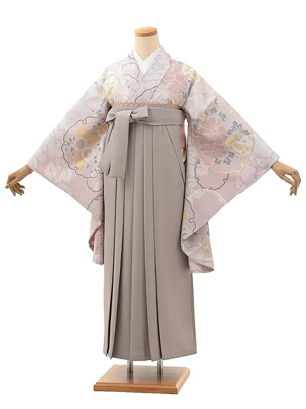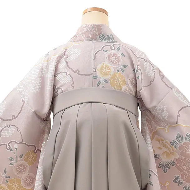 卒業式袴レンタルV089 薄パープル 雪輪 花×グレージュ