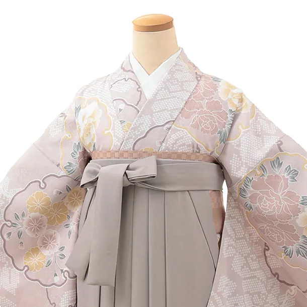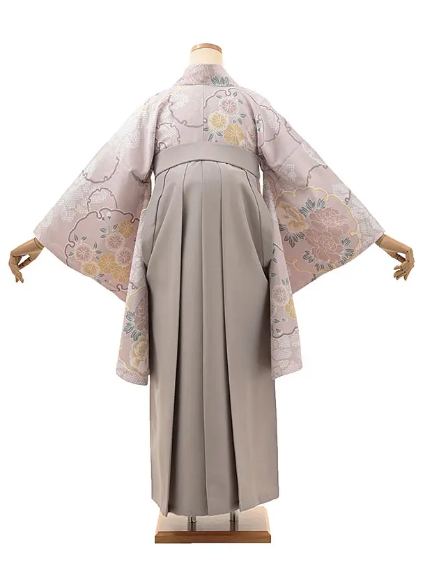 卒業式袴レンタルV090 薄パープル 雪輪 花×グレージュ