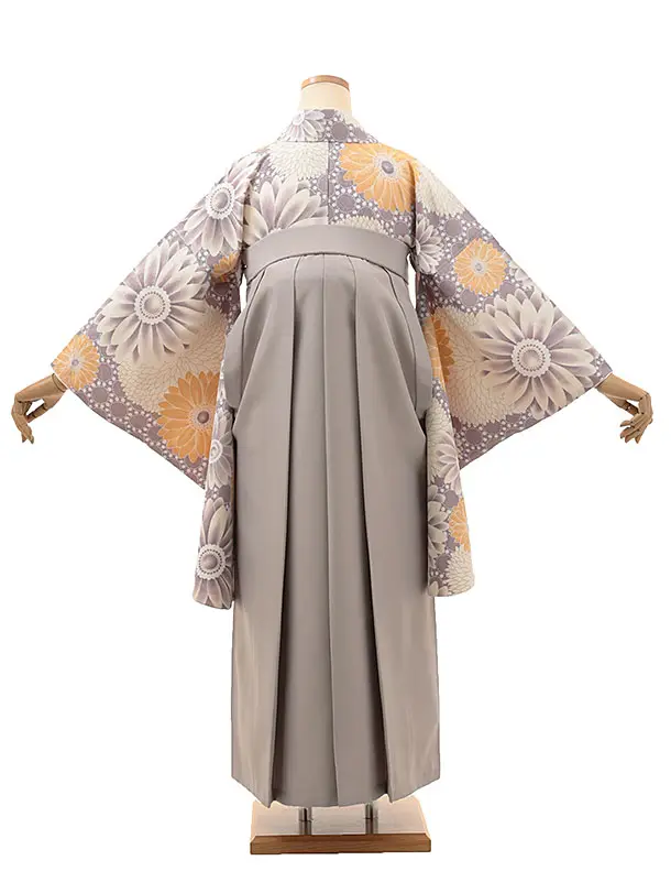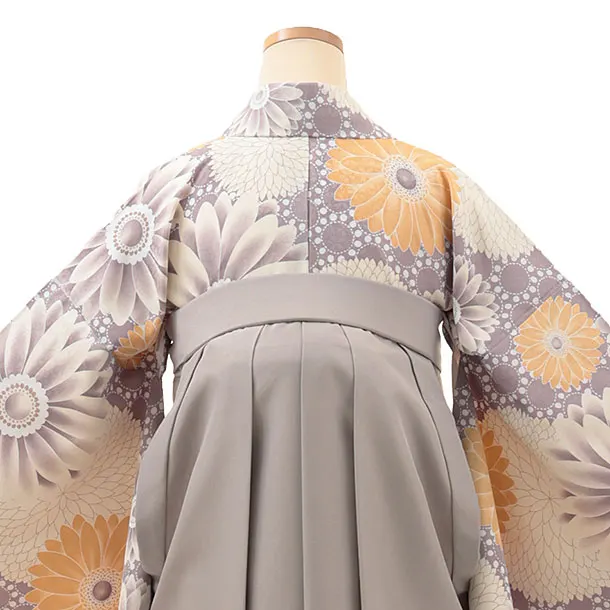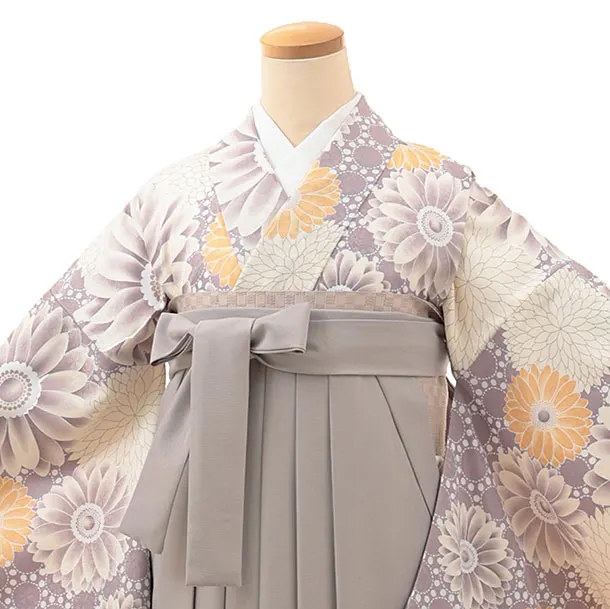 卒業式袴レンタルV093 薄パープル 花×グレージュ