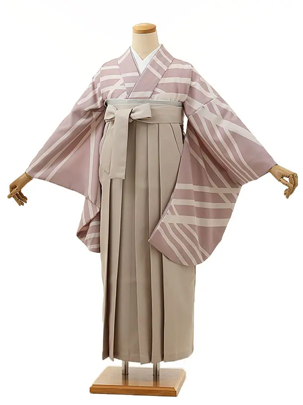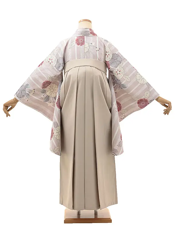 卒業式袴レンタルV099 薄ラベンダーストライプ 花×ベージュ