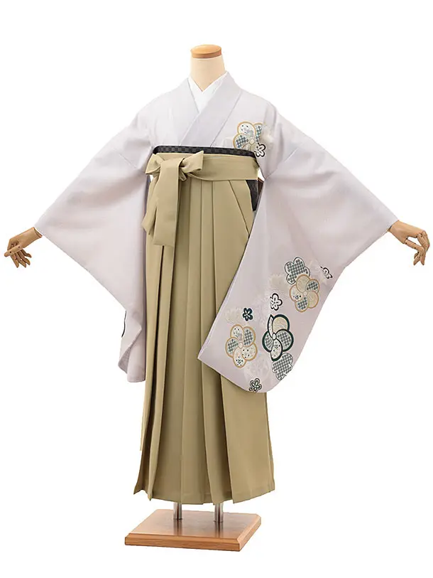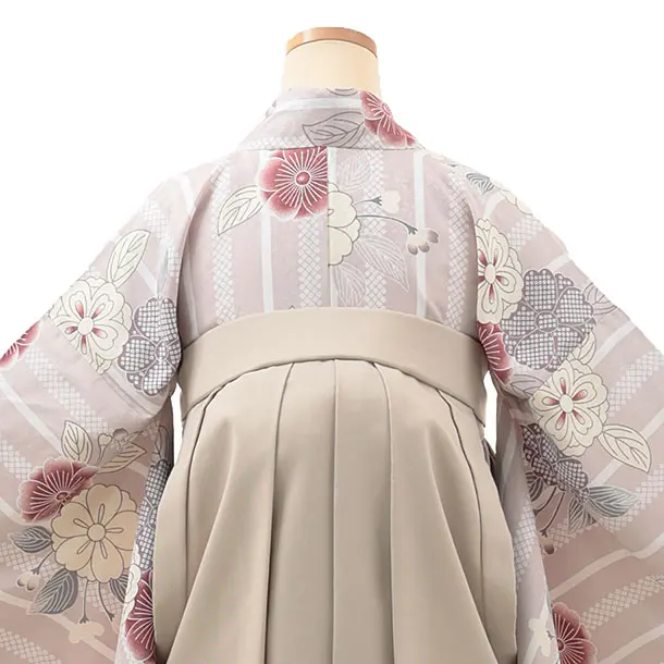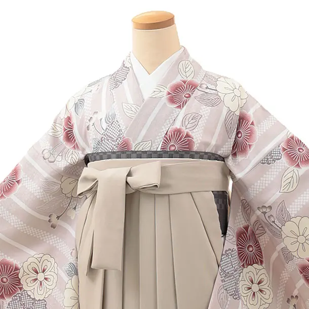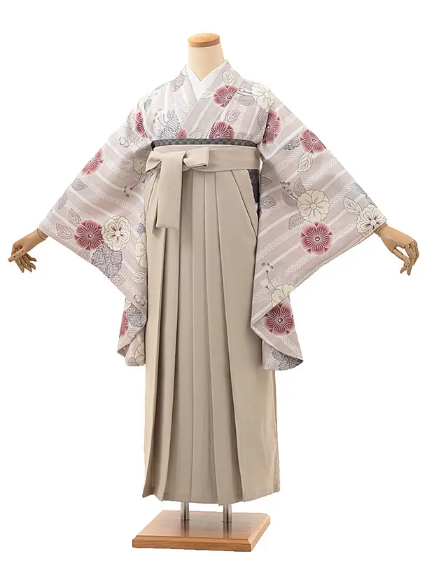 卒業式袴レンタルV100 薄ラベンダーストライプ 花×ベージュ
