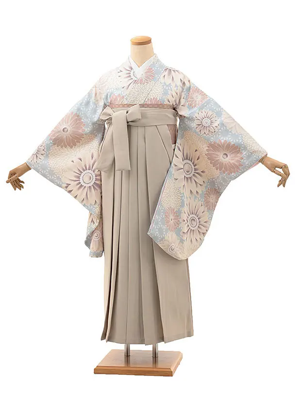卒業式袴レンタルV101 ペールブルー 花×ベージュ