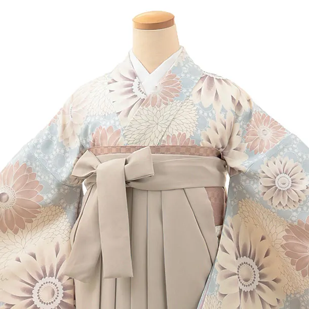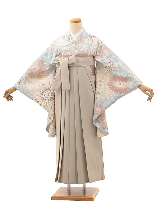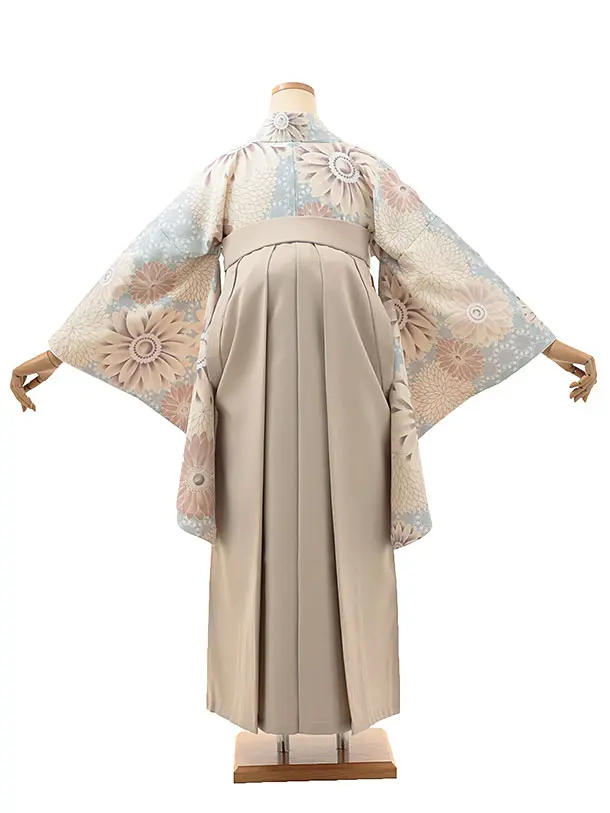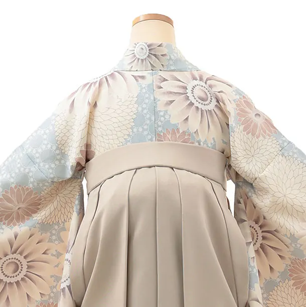 卒業式袴レンタルV102 ペールブルー 花×ベージュ