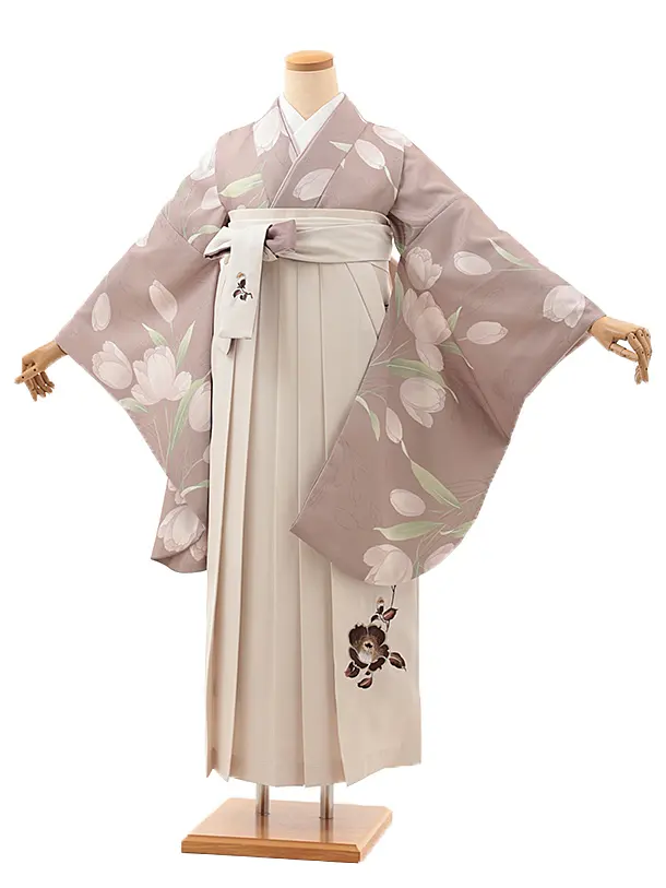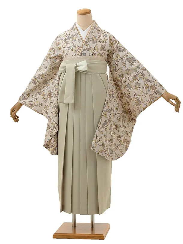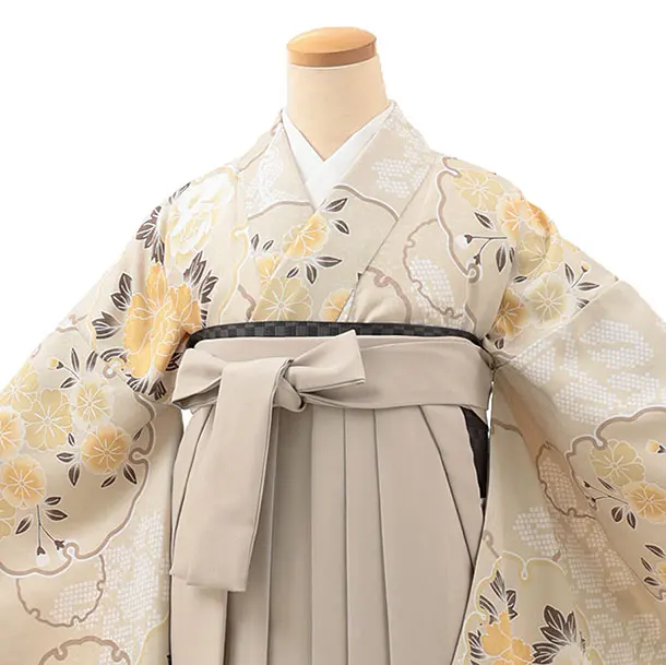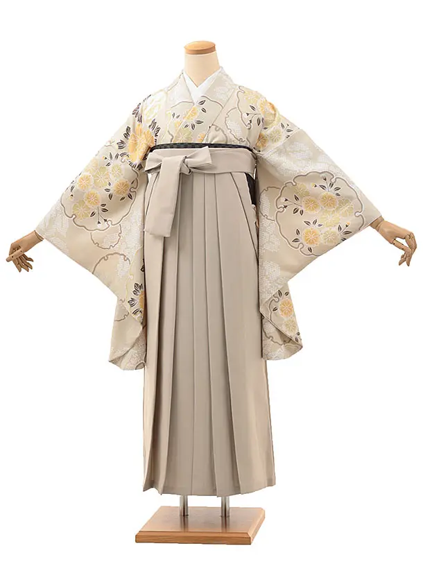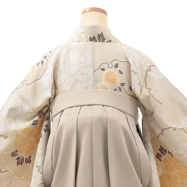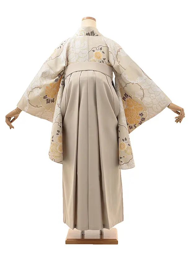 卒業式袴レンタルV103 ベージュ 雪輪 花×ベージュ